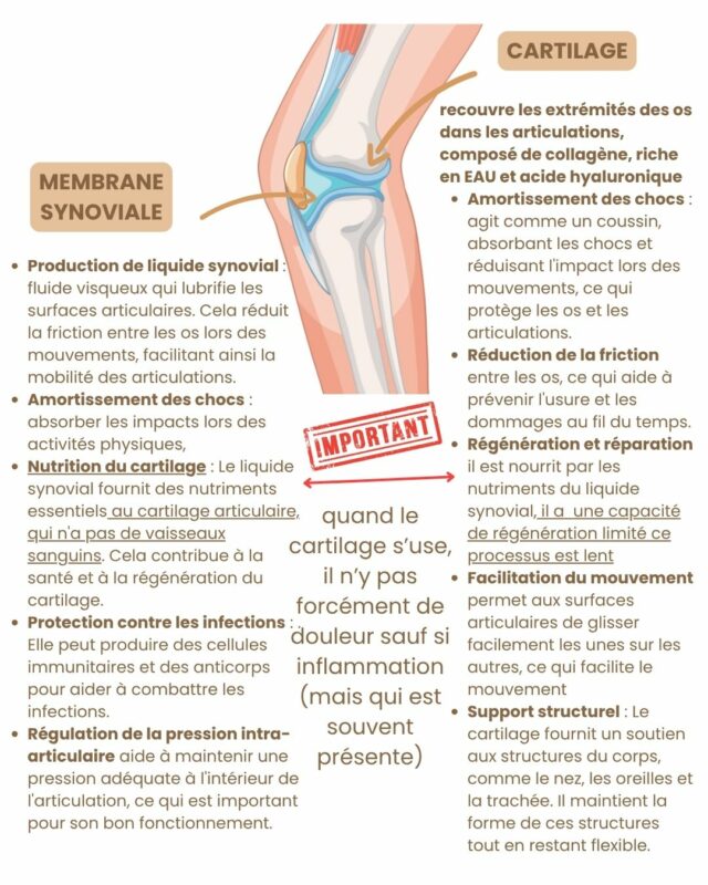 - manque d’apport de protéines de bonne qualité (le cartilage c’est du collagène donc de la protéine)