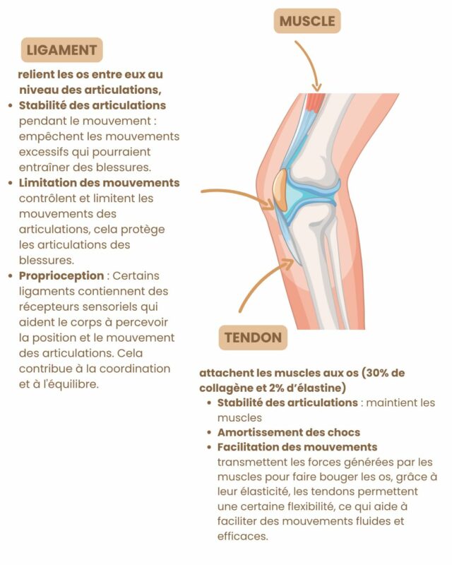L’articulation sera d’autant plus en fonction de la qualité de l’os et du cartilage, de la synovie (enveloppe + liquide), du tissu musculaire, des tendons et des ligaments.